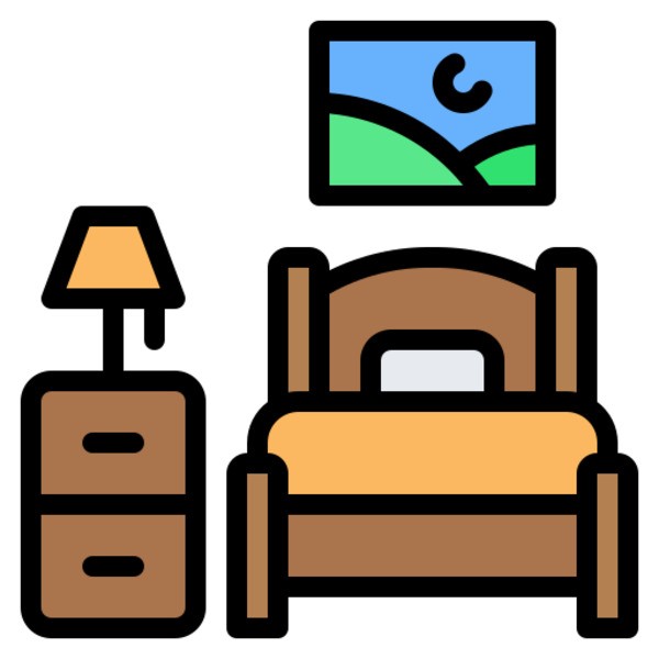 Обстановка лаконичная и уютная: шкаф для одежды, прикроватные тумбочки, столик. Пространства достаточно, чтобы не чувствовать себя стесненно.